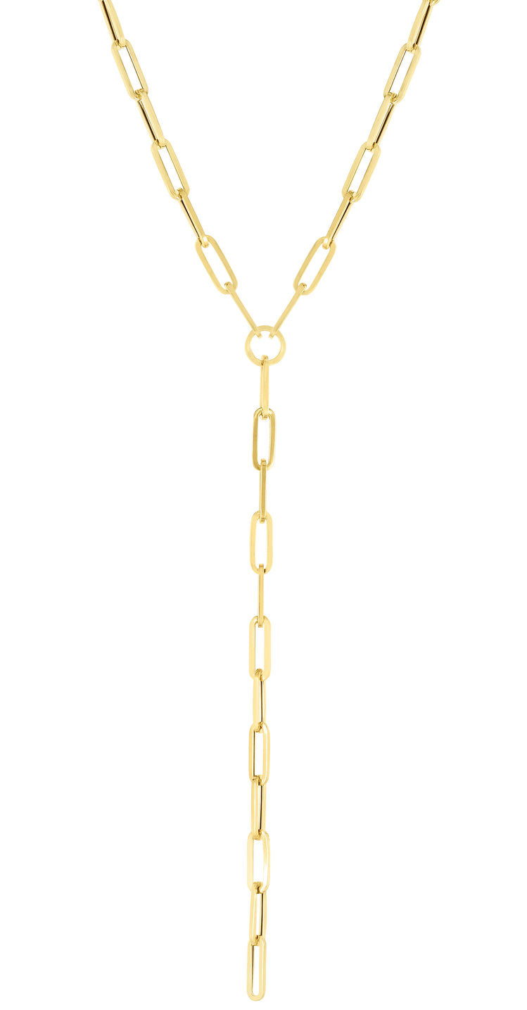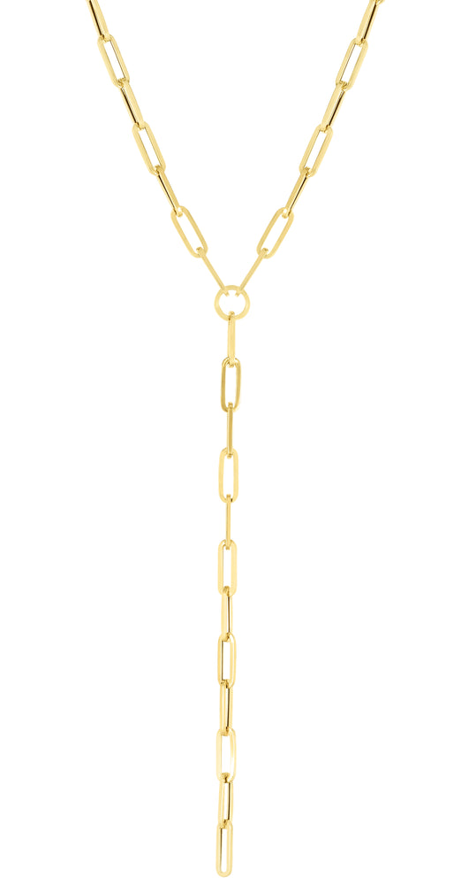 | Description | 14K Yellow Gold 17" Lariat Paperclip Y-Necklace |