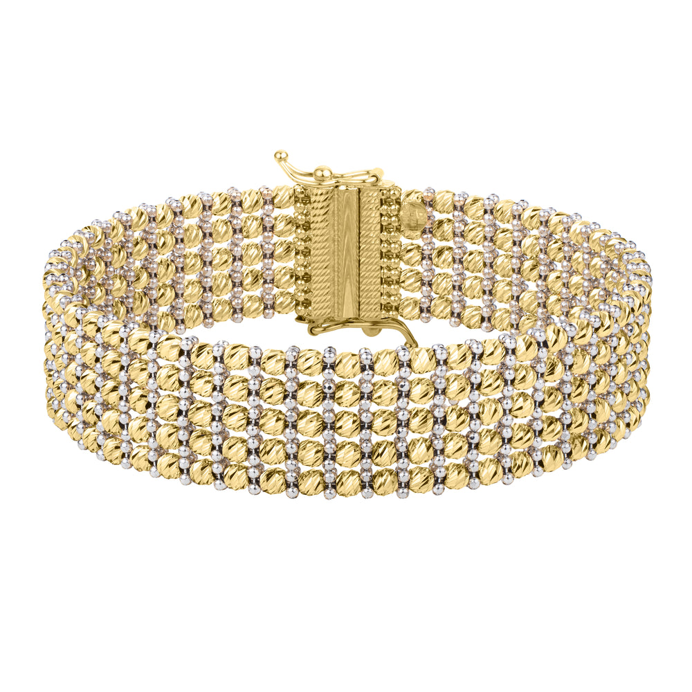 | System Description | 14K 7in Two Tone Finish Diamond Cut/Textured Beaded Multi Row Bangle with Slide with Double Figure 8 Clasp |