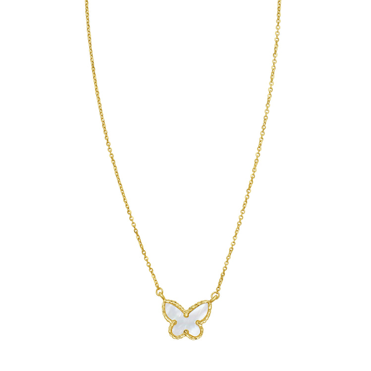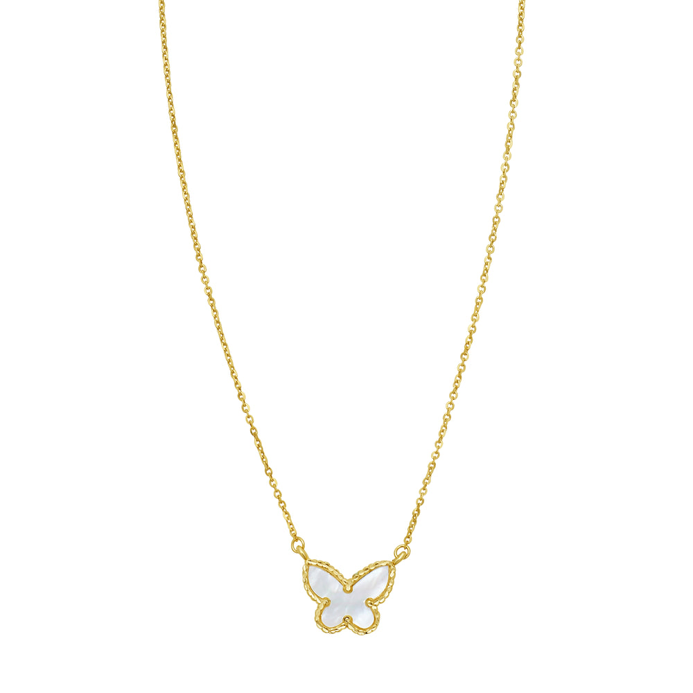 14K Primavera MOP Butterfly Necklace-Yellow | Lobster