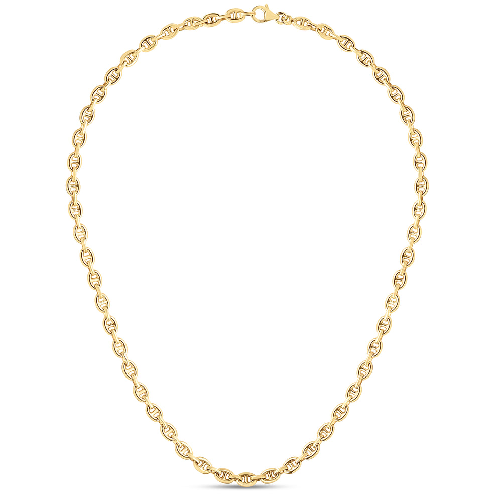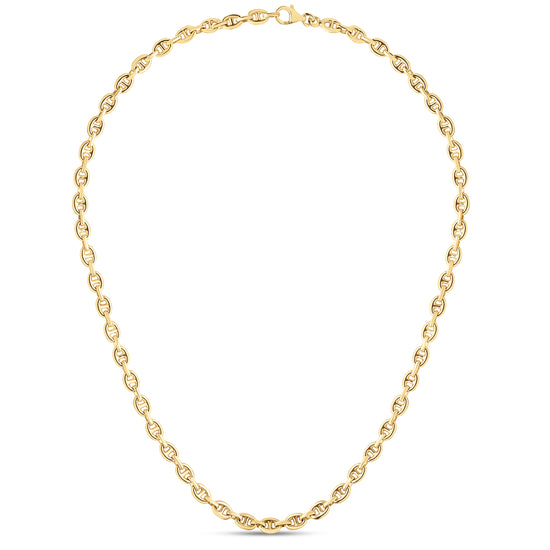 14K Puffed 5.4mm Mariner Necklace-Yellow | Lobster