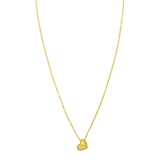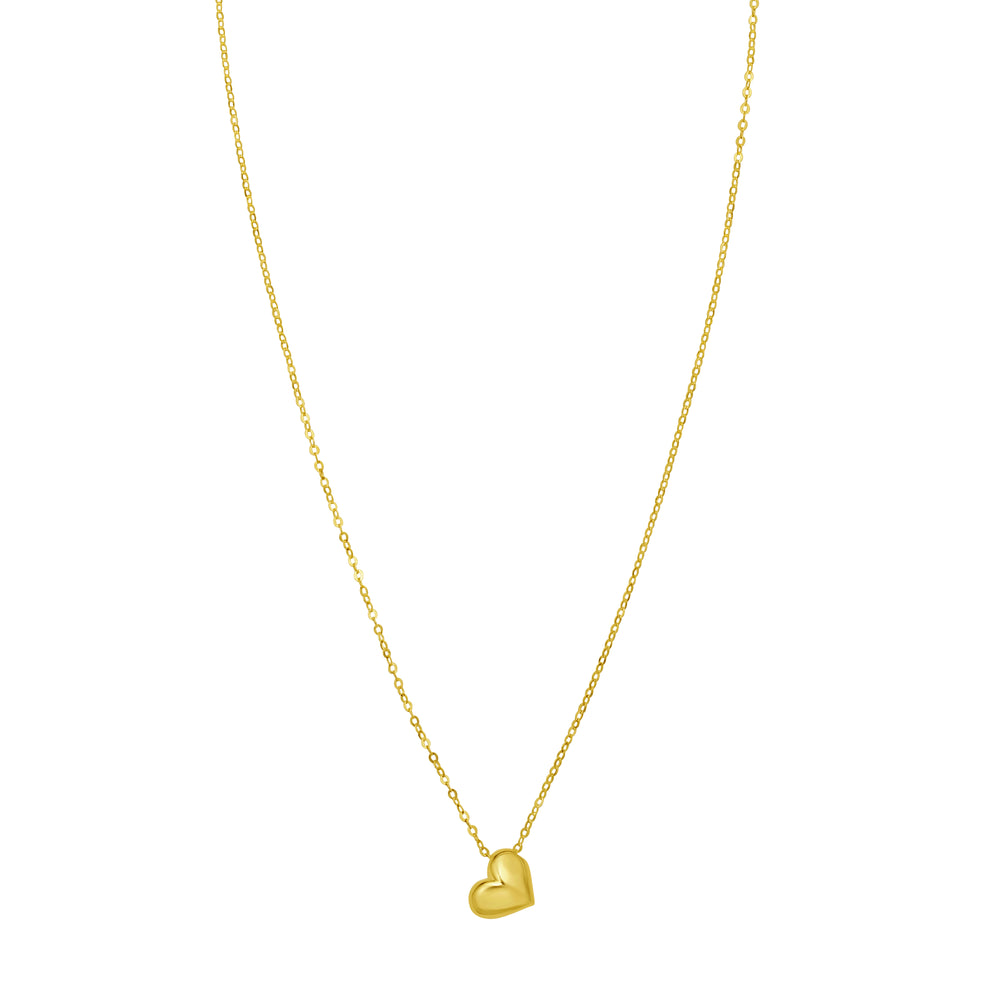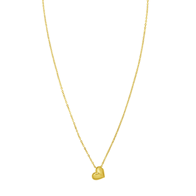 14K Puffed Mini Heart Pendant-Yellow | Lobster