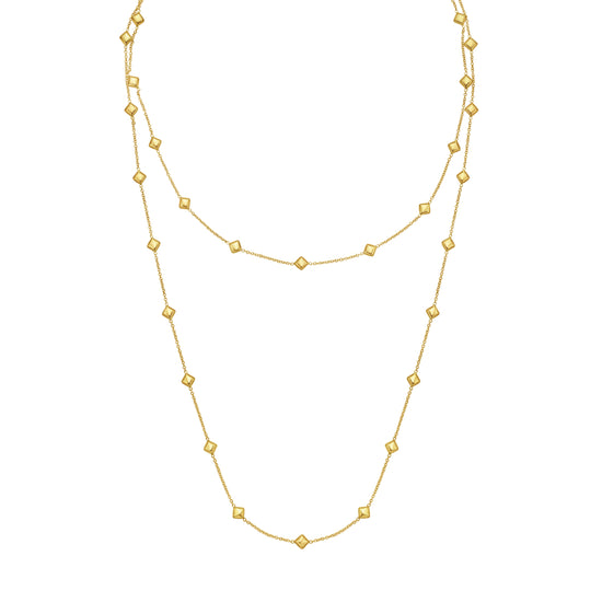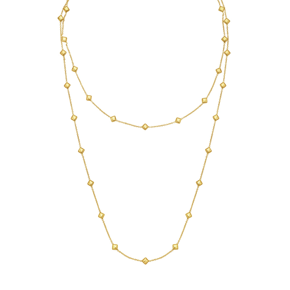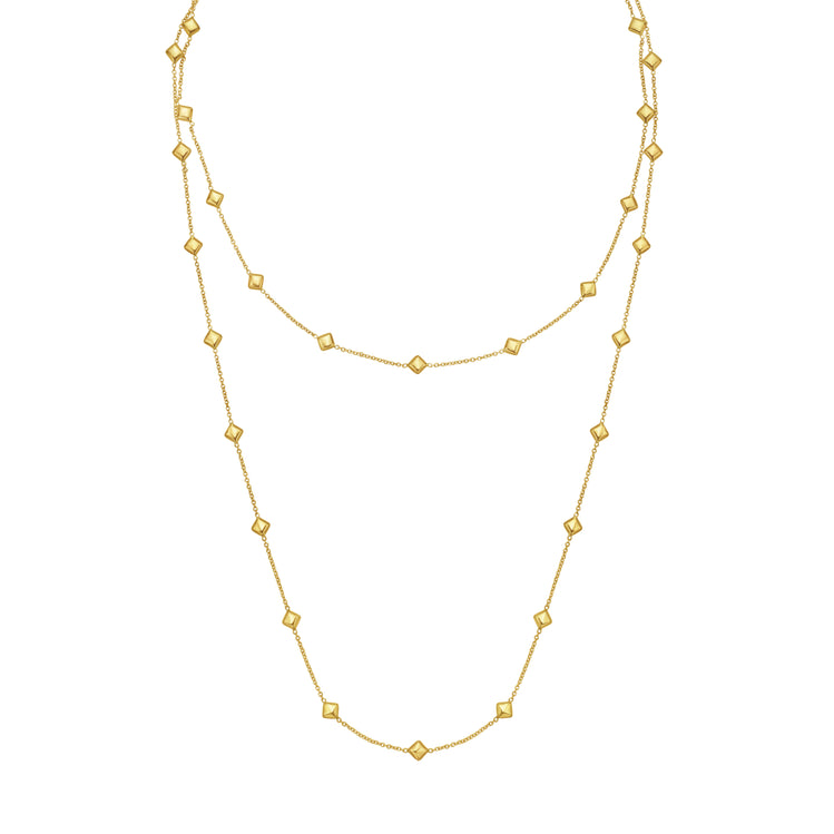 14K Pyramid Station Layered Necklace-Yellow | Lobster