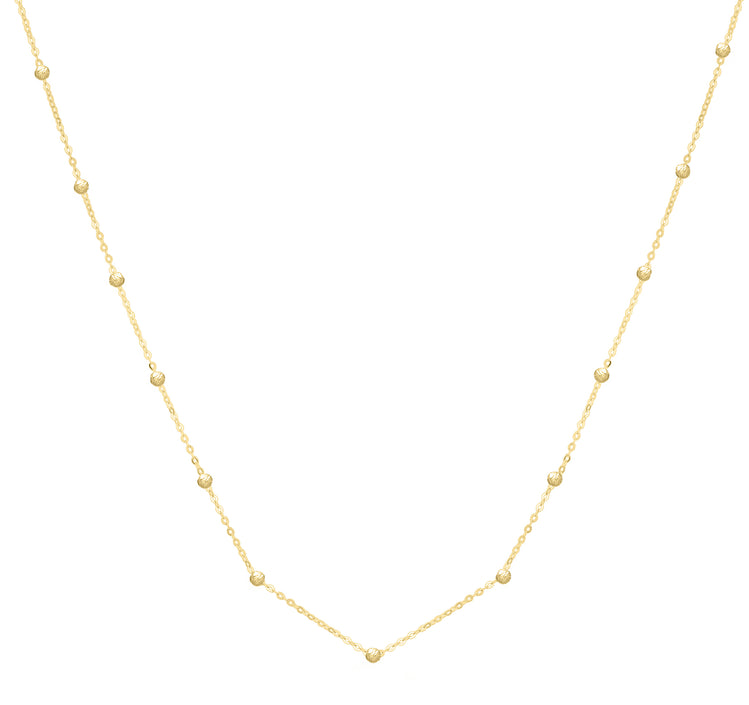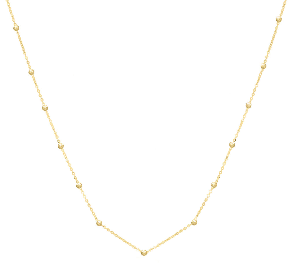 | Description | 14K Yellow Gold Saturn Bead Chain 18" Necklace with Lobster Clasp |