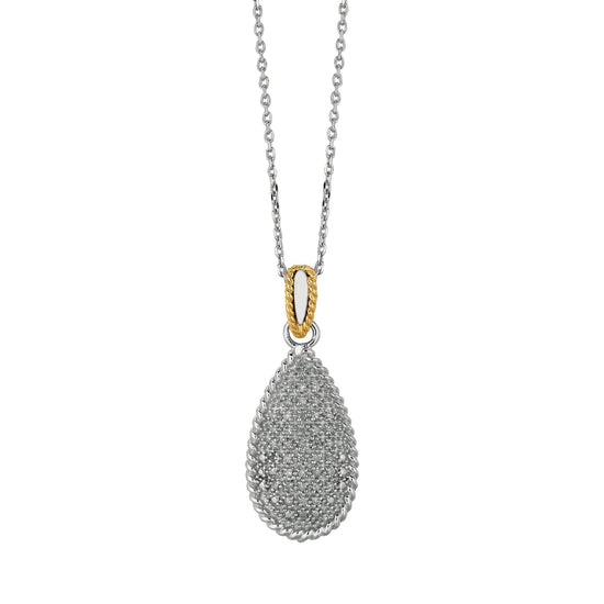System Description | Sterling Silver & 14K Royal Duet 18in Yellow & Rhodium Pendant |