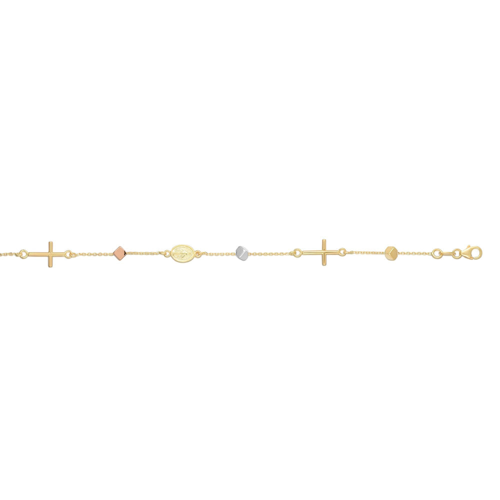 | Description | 14K Tri-color Gold 7.5" Polished Cube & Cross Bracelet |