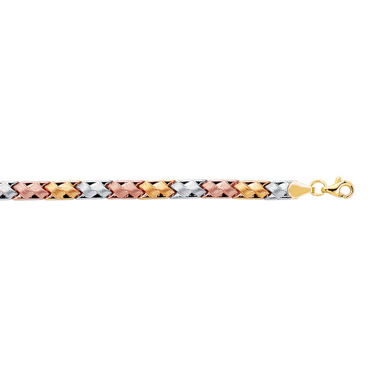 | Description | 14K Tri-color Gold 7.25" Satin Mini X Stampato Bracelet |