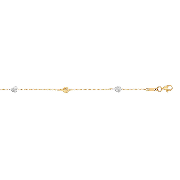 Description | 14K Two-tone Gold 10" Diamond Cut Heart Anklet |