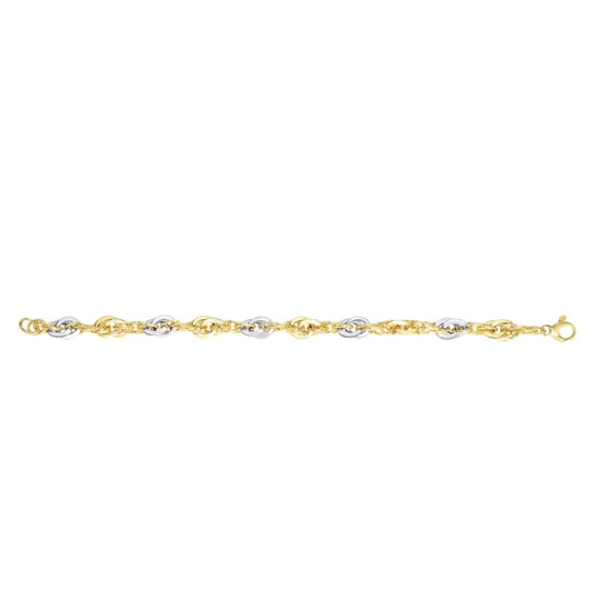 System Description | 14K 7.5in Two-Tone Diamond Cut/ Textured Bracelet with Lobster Clasp |