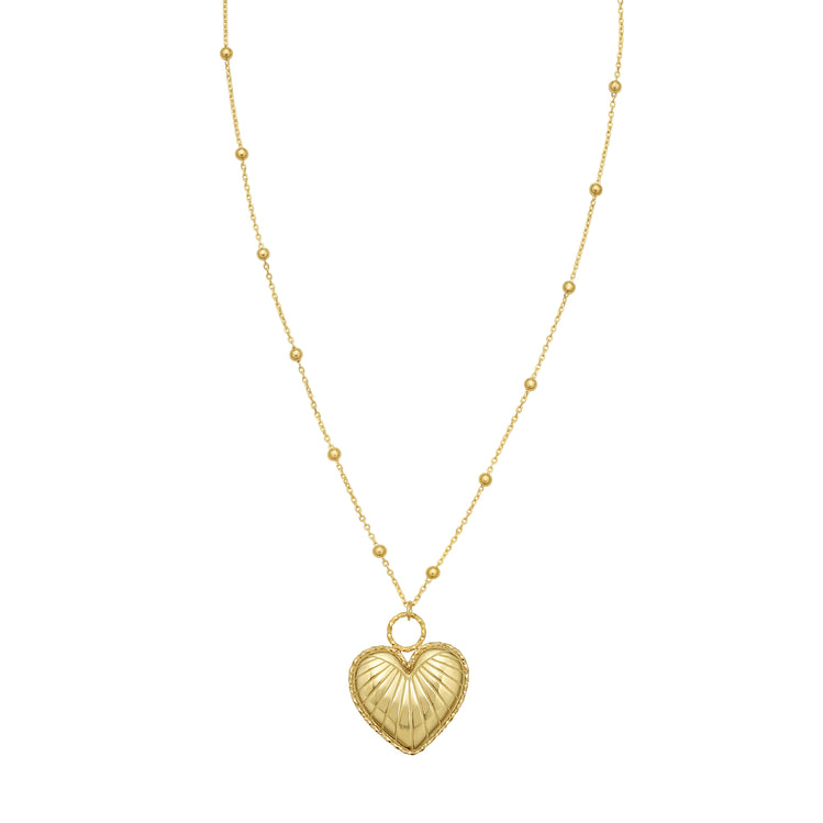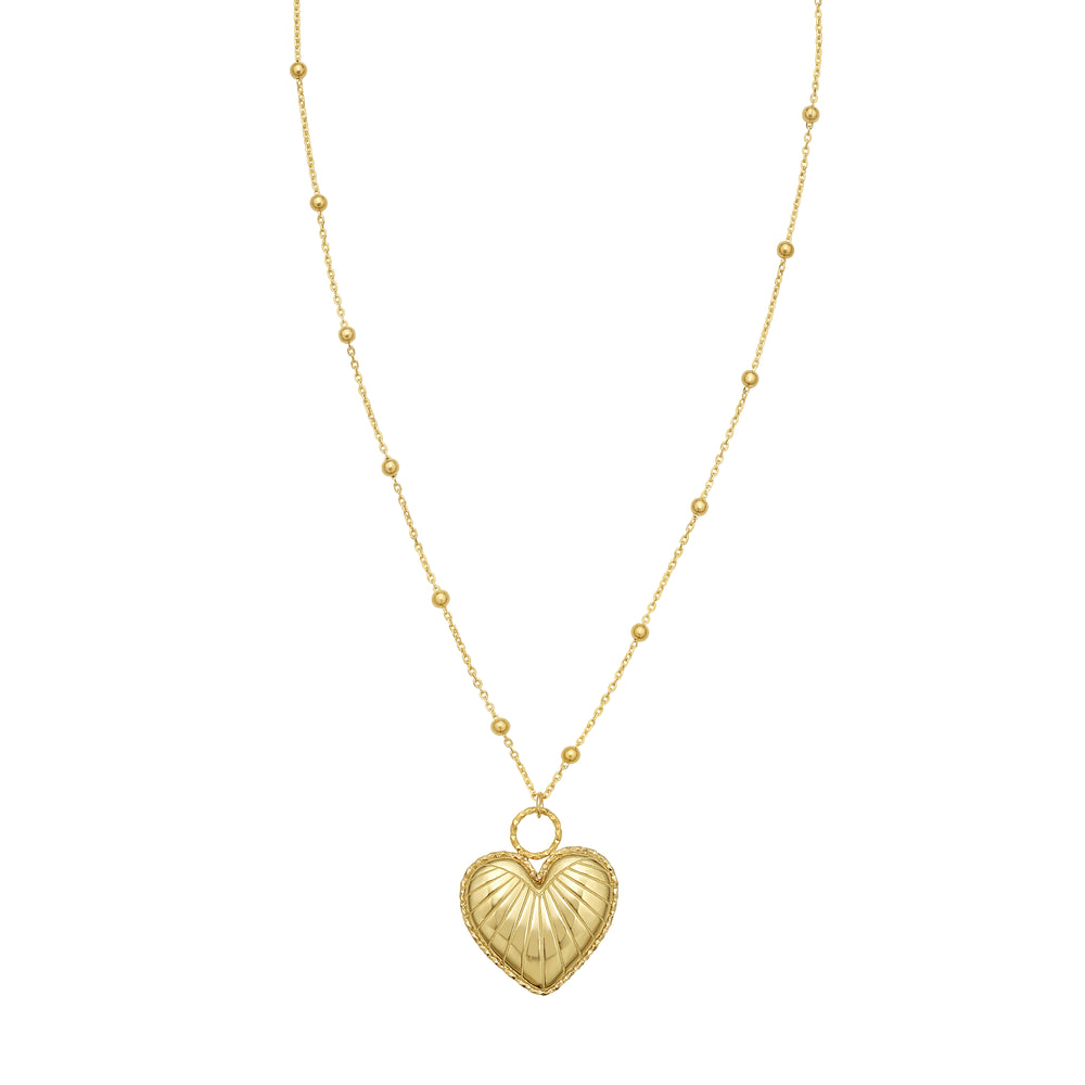 14K Vintage Puffed Heart Necklace-Yellow | Lobster