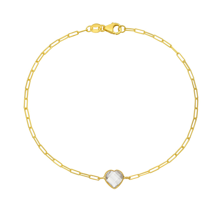 14K White Topaz Heart Bracelet-Yellow | Lobster