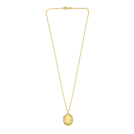 Gold Over Silver Oval Vine Locket Necklace-Yellow | Lobster
