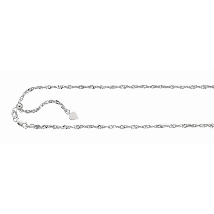 Description | Sterling Silver 1.5mm Adjustable Singapore 22" Chain with Lobster Clasp |