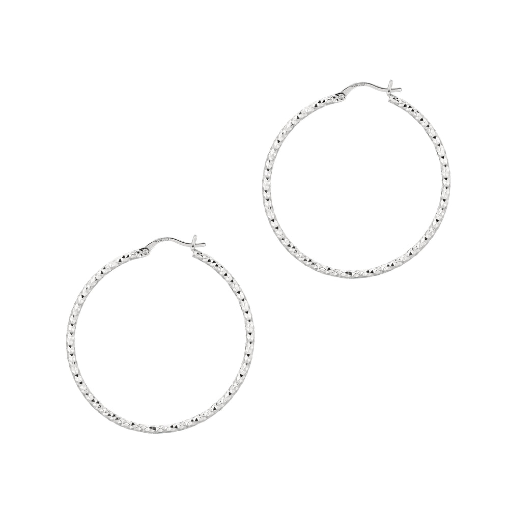 Description | Sterling Silver 2x40MM Diamond Cut Hoop Earring |