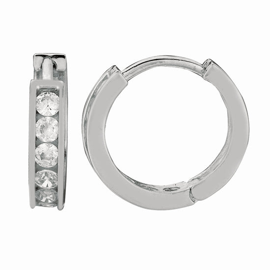 Description | Sterling Silver Channel Set 3x10mm CZ Hoop Earrings |