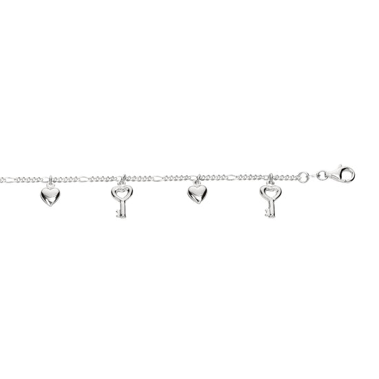 Description | Sterling Silver 10" Dangle Key and Hearts Anklet |