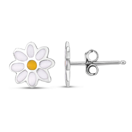 Description | Sterling Silver Polished Enamel Daisy Studs with Push Back Closure. |
