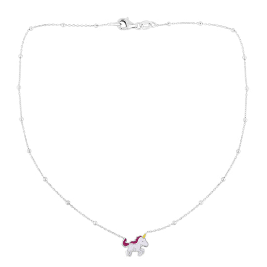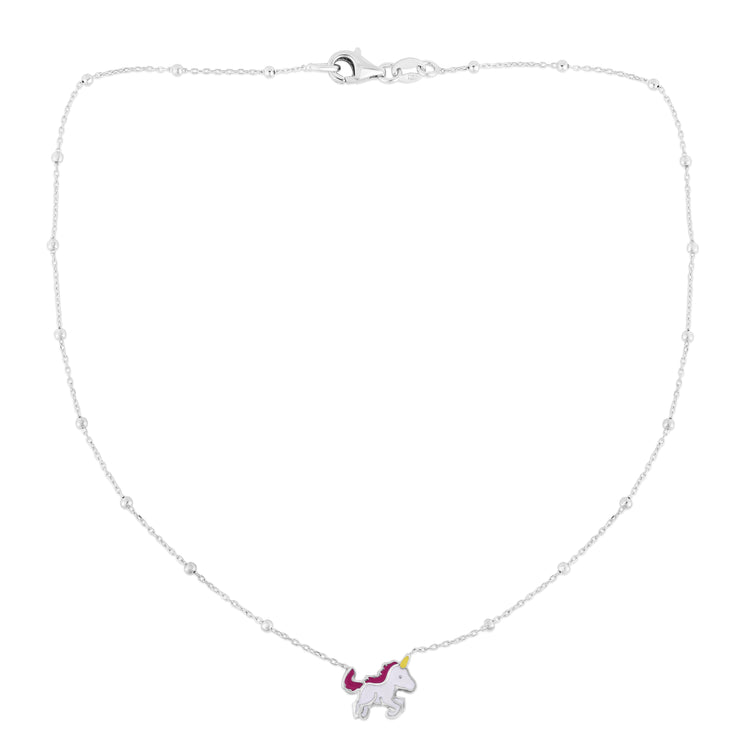 Description | Sterling Silver Polished Enamel Unicorn Necklace with Lobster Clasp. Total length 16", includes 2" extender. |