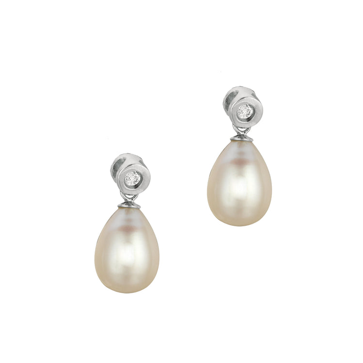 Description | Sterling Silver Freshwater Pearl and Bezel Set CZ Drop Earrings |