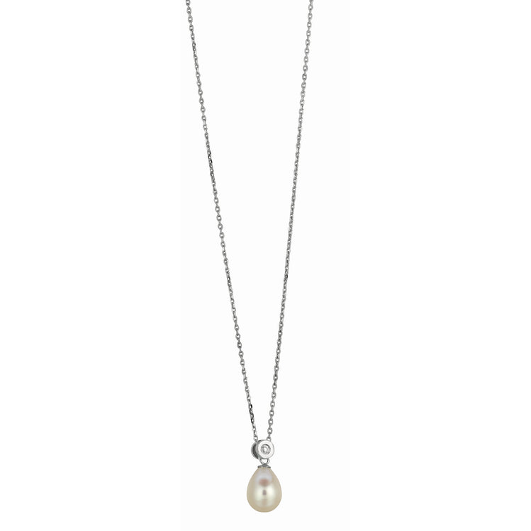 Description | Sterling Silver 18" Freshwater Pearl and Bezel Set CZ Necklace |