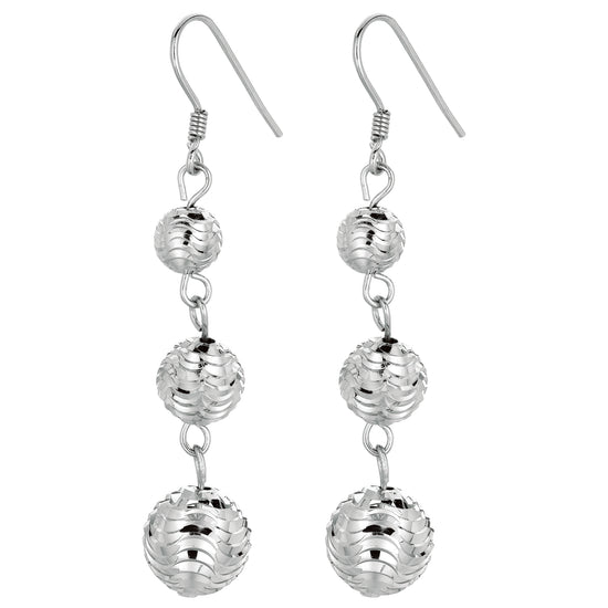 Description | Sterling Silver Graduated Diamond Cut Beads Drop Earring |