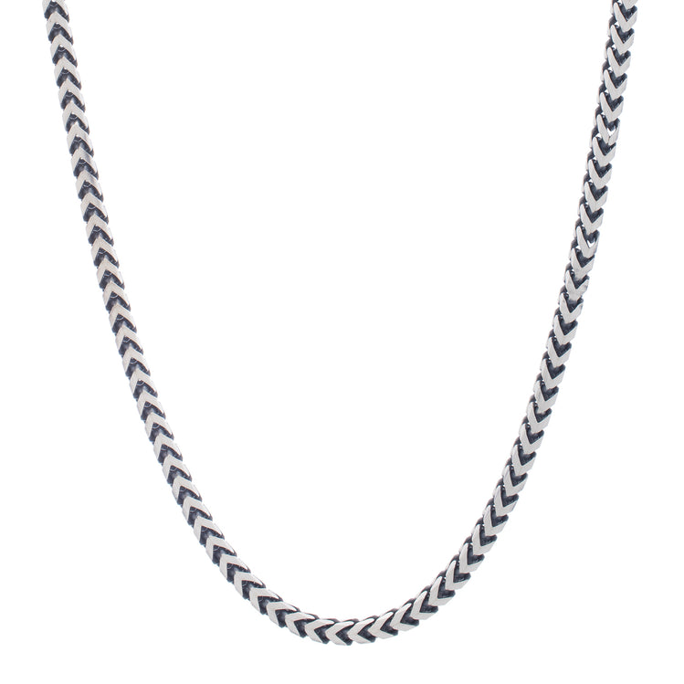 System Description | Silver 24in with Gun Metal Finish Fancy Franco Necklace with Lobster Clasp |