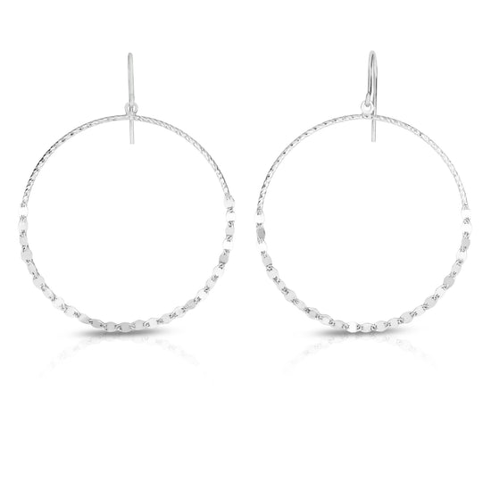 Description | Sterling Silver Large Circle Mirror Chain Dangle Earring |