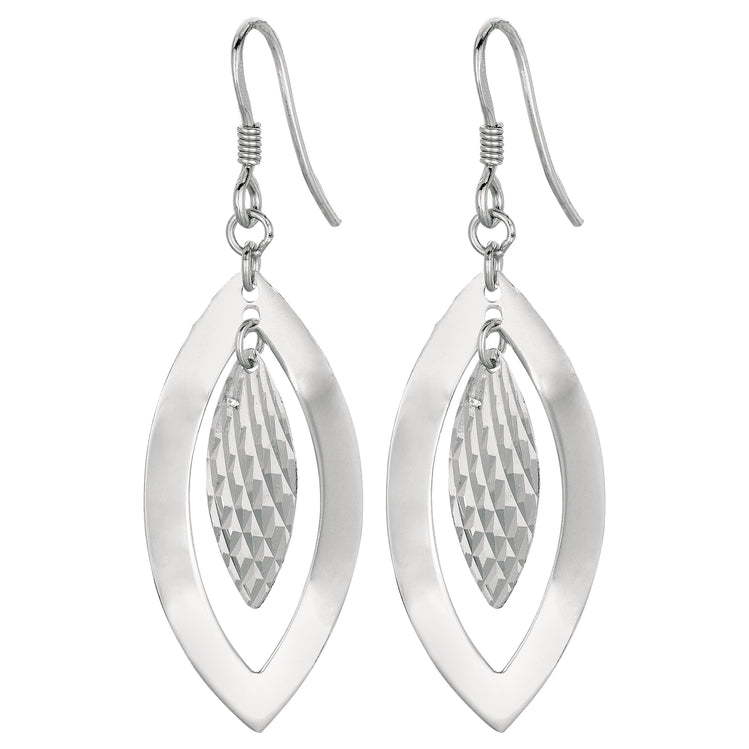 Description | Sterling Silver Diamond Cut & Polished Marquise Disc Dangle Earring |
