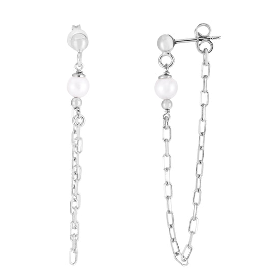 Description | Sterling Silver Polished Pearl Chain Front-to-Back Earrings with Push Back closure. |