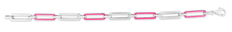Description | Silver 7" Hot Pink Enamel Paperclip Bracelet with Lobster Clasp. |