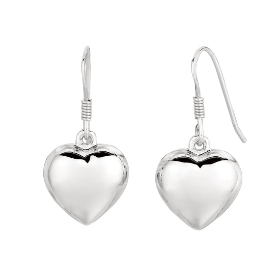 Description | Sterling Silver Puff Heart Dangle Earring |