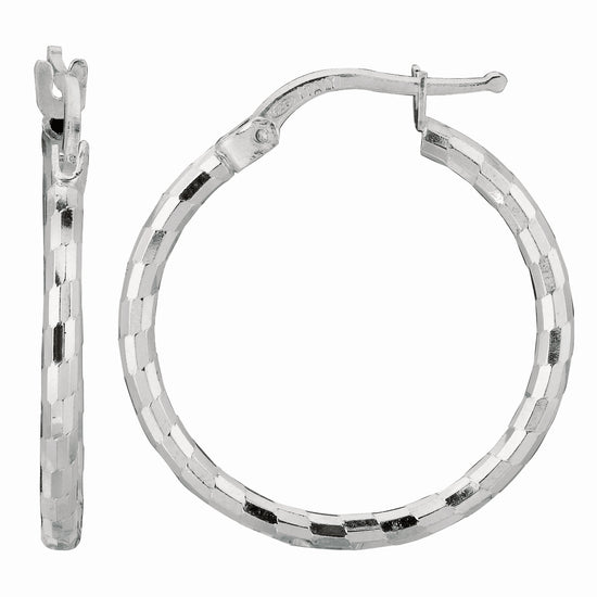 Description | Sterling Silver Diamond Cut Squares Medium Hoop Earring |