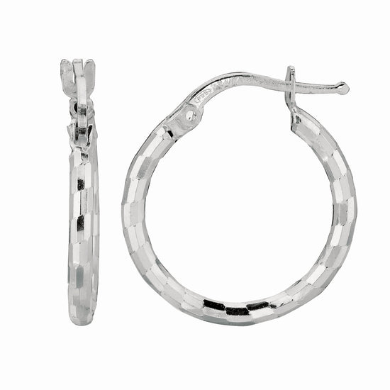 Description | Sterling Silver Diamond Cut Squares Small Hoop Earring |