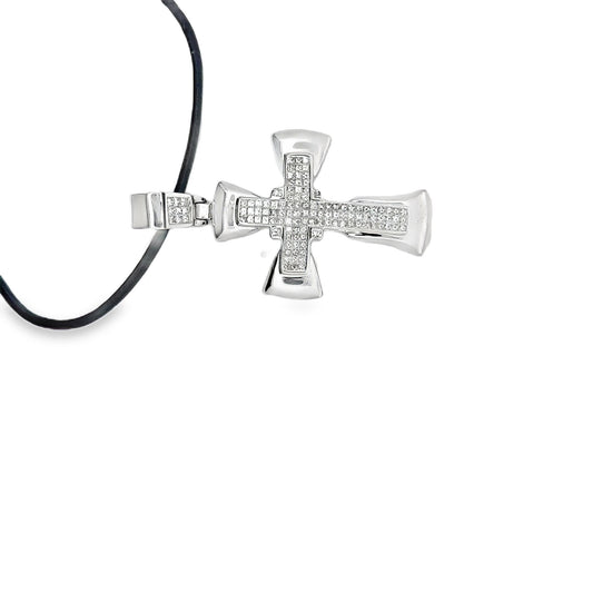 White Gold Cross Pendant with Round Brilliant Cut Diamonds